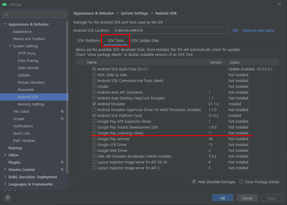Google Play Licensing Library 체크후 재빌드
