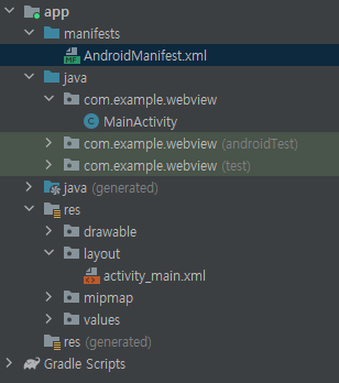 activity_main.xml 화일에 웹뷰 레이아웃 추가
